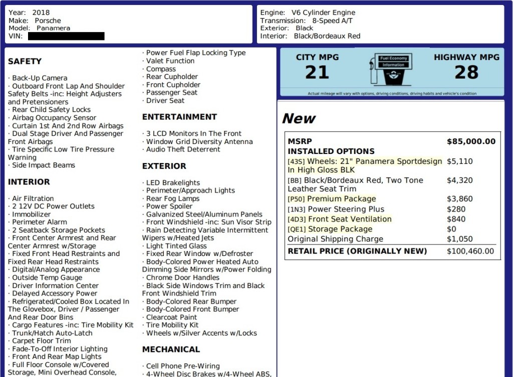 2018 Porsche Panamera, MSRP $100460, 41K Miles / 66K Km, 2-Owners, CLEAN TITLE, Clean Carfax, Clean AutoCheck *** Wholesale / EXPORT Price FOB Los Angeles CA ***