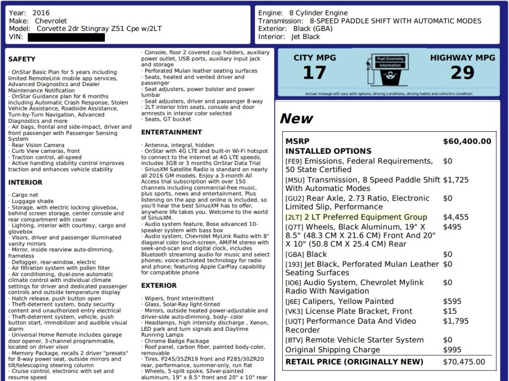 2016 Chevrolet Corvette Stingray Z51 2LT