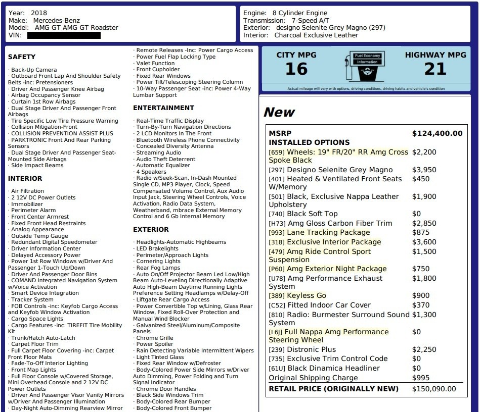 2018 Mercedes-Benz AMG GT